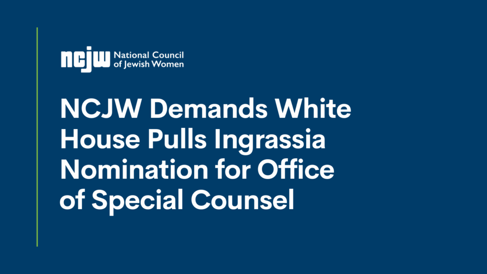 WASHINGTON, DC — Today, National Council of Jewish Women (NCJW) — the nation’s leading Jewish feminist civil rights organization, representing 250,000 changemakers across the United States and Israel — is once again raising the alarm on Paul Ingrassia, nominee for the Office of Special Counsel, and is calling on President Trump to withdraw the nomination.